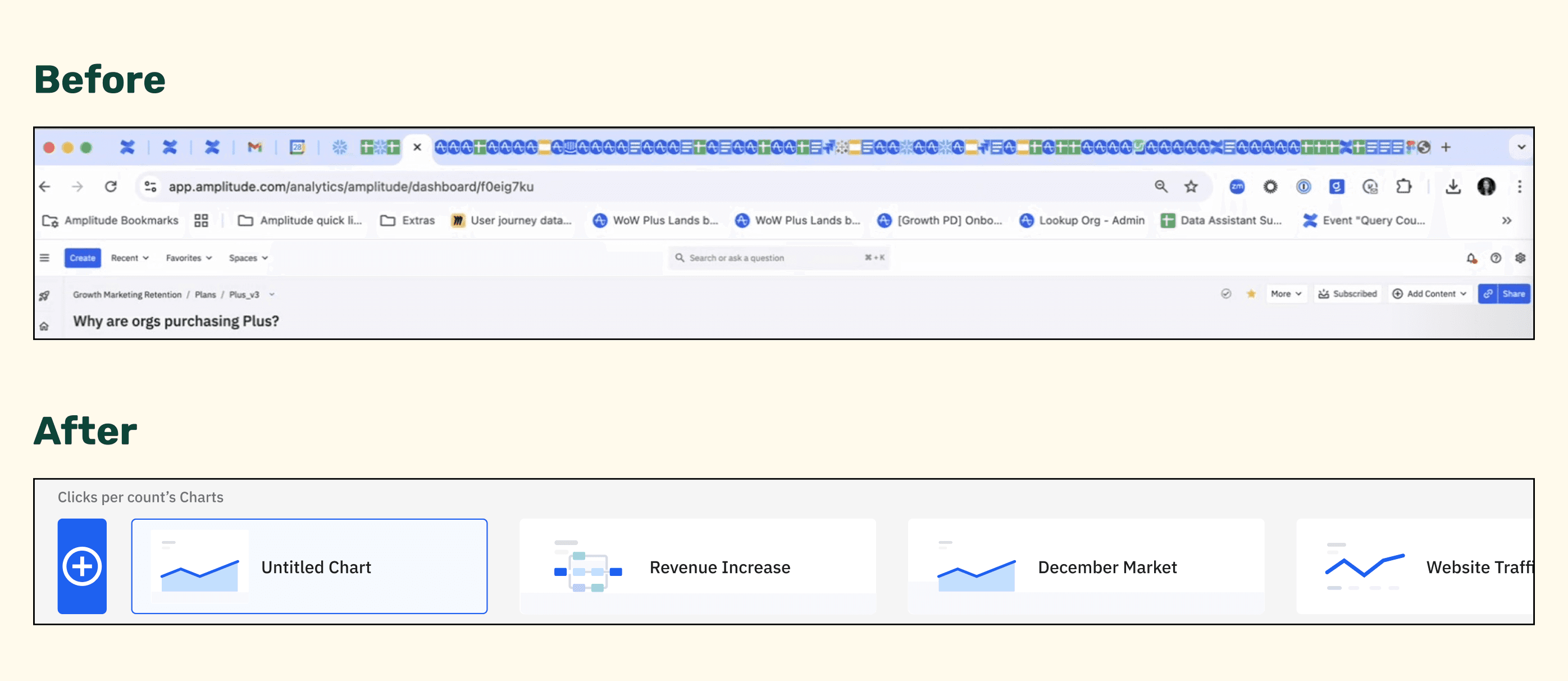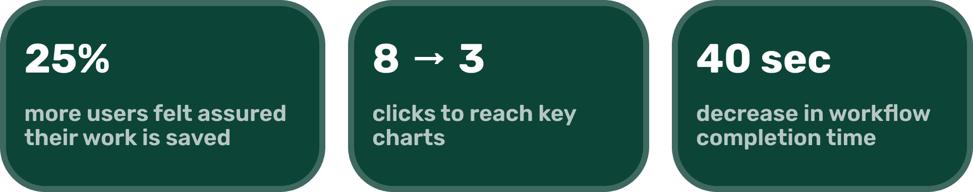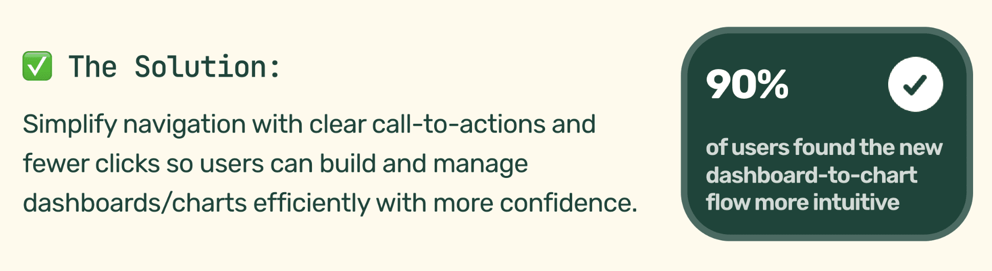 It ultimately showed that we had to reduce friction in the chart-to-dashboard flow and make key call-to-action buttons more prominent and intuitive.