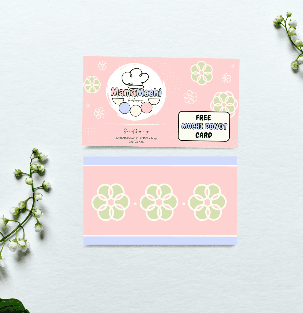 MamaMochi is a mom-and-pop shop in Sudbury, Canada. I was in charge of developing a brand style for their new store opening along with designing a box packaging for their mochi donuts and a complimentary free mochi donut gift card.